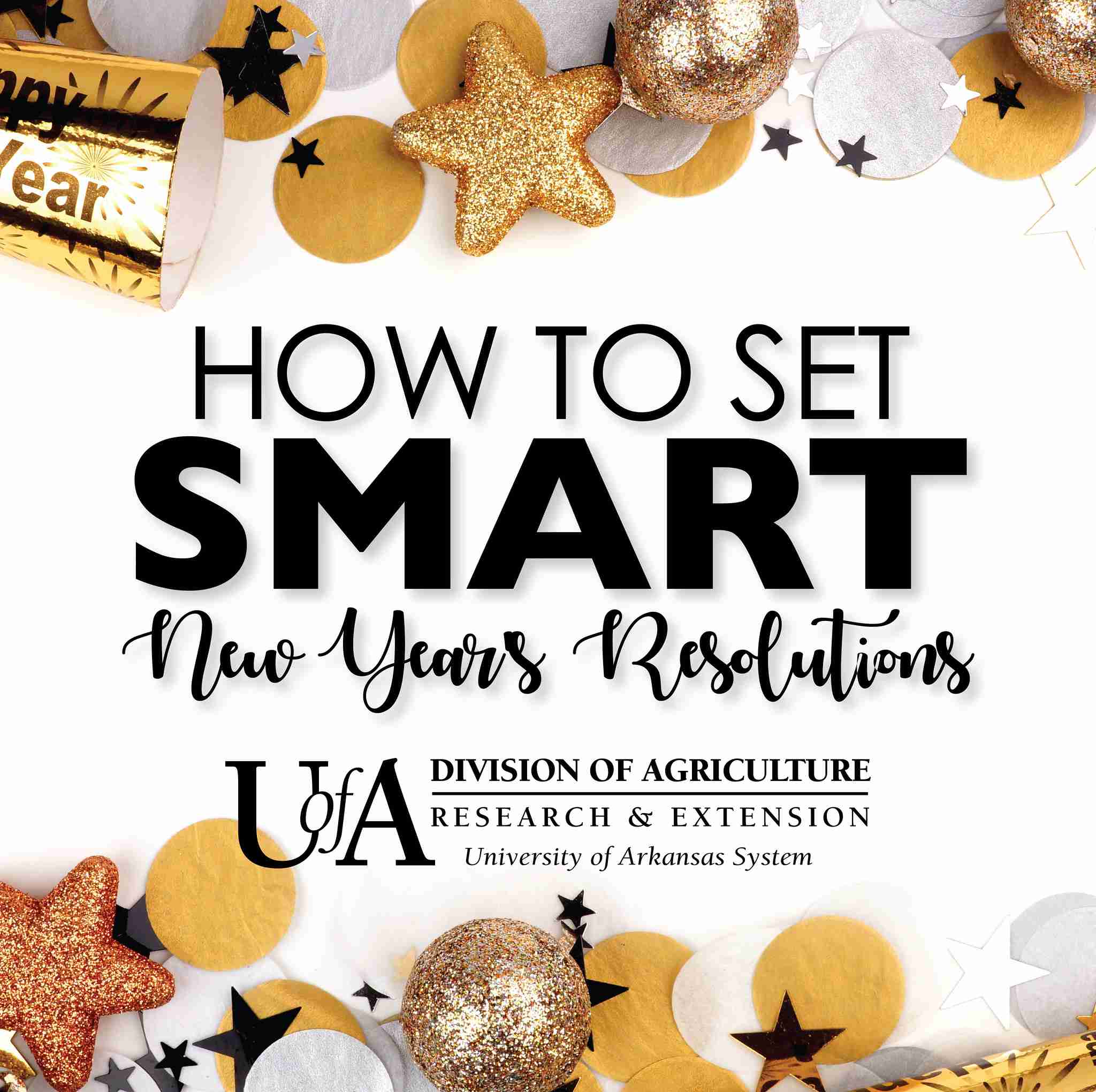 LITTLE ROCK — A new year often involves resolutions to improve health, form a new habit or change one’s behavior. To better achieve these changes, Brittney Schrick, extension associate professor and family life specialist for the University of Arkansas System Division of Agriculture, recommends setting SMART goals by ensuring they are specific, measurable, attainable, relevant and time-sensitive.