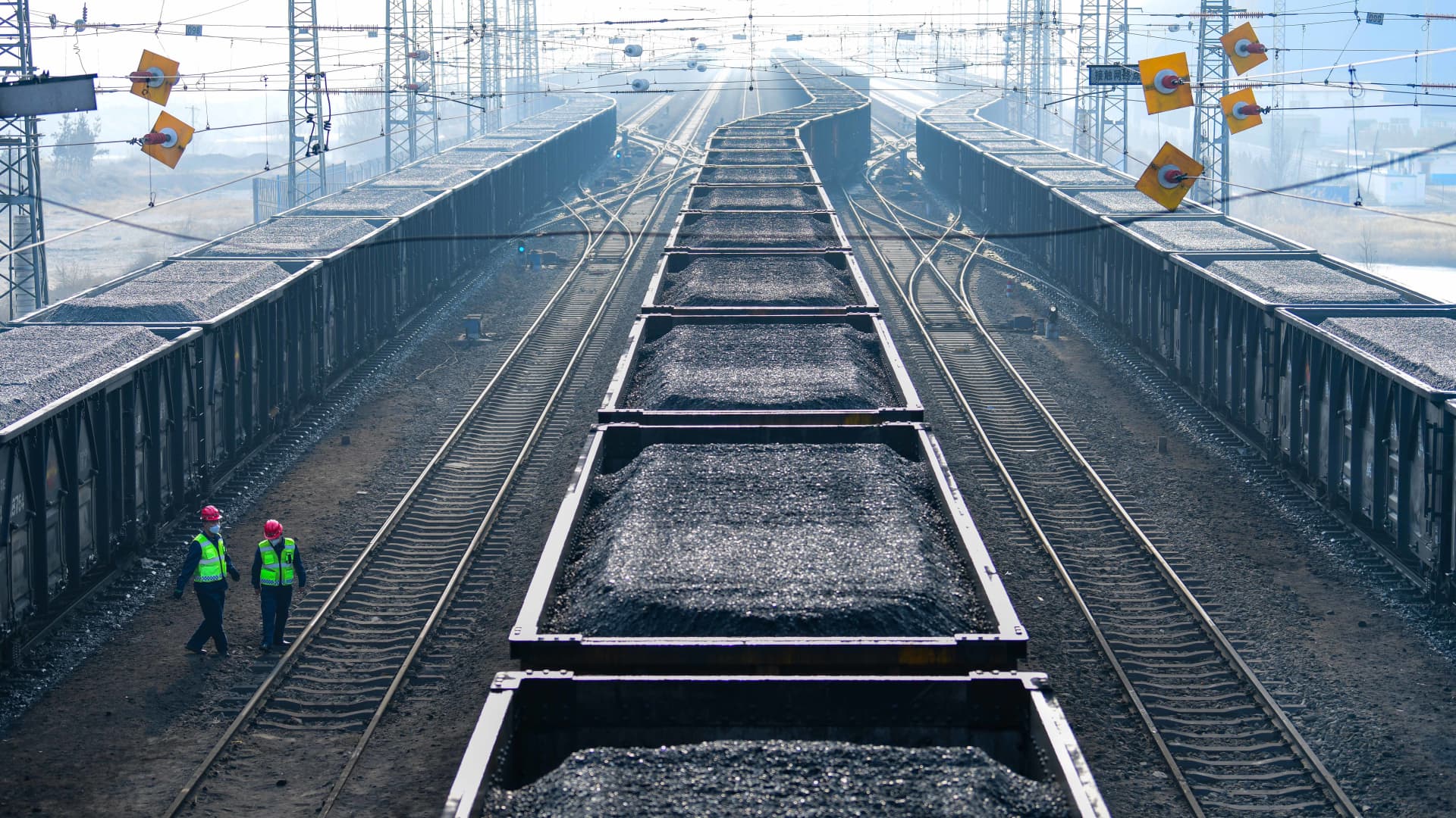 Train loaded with coal ready to leave a coal mine belonging to China Energy Investment Corporation on Jan. 14, 2023 in Ejin Horo Banner, Ordos City, Inner Mongolia Autonomous Region of China.