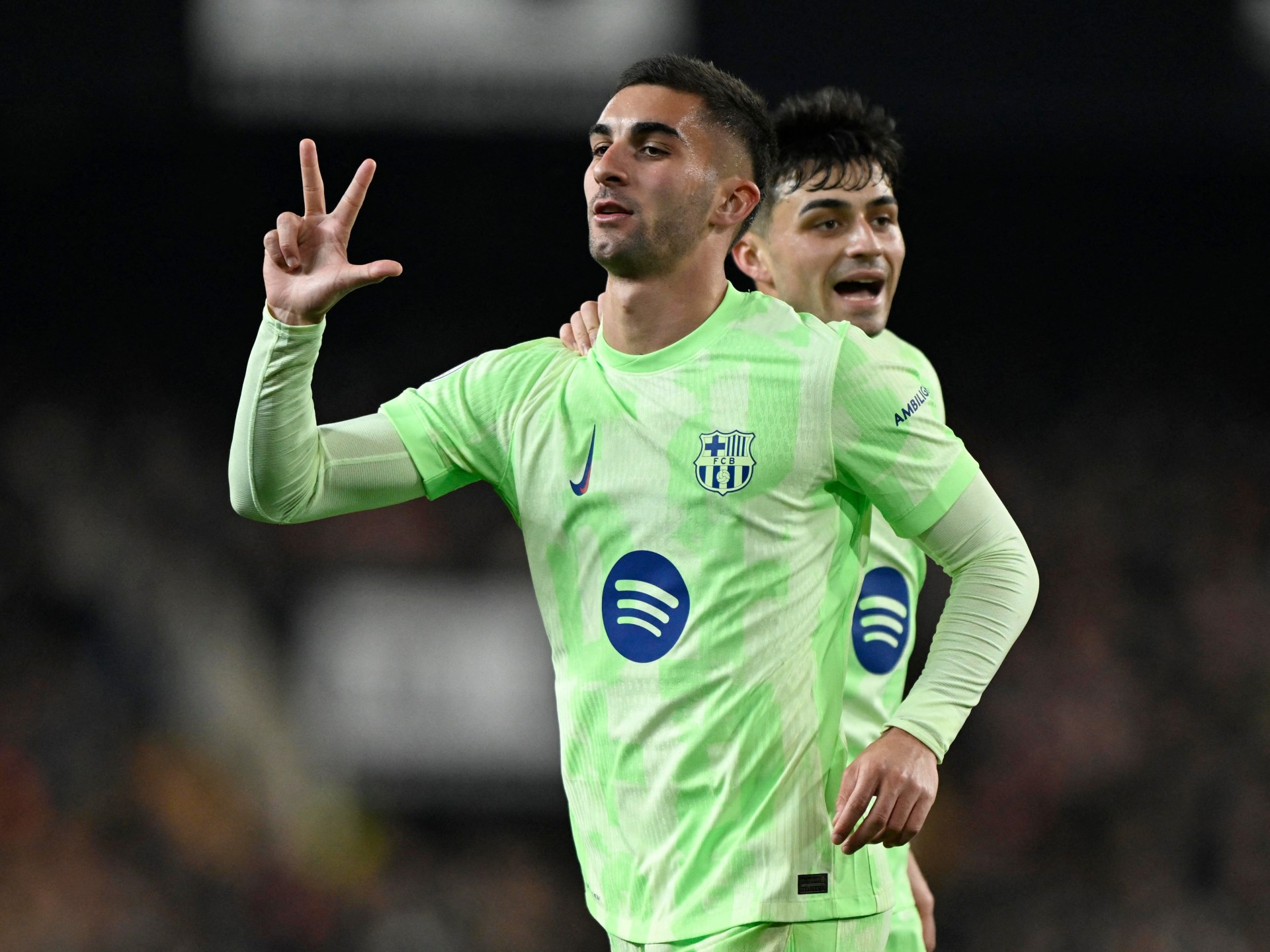 The Barca forward opened the scoring in the third minute at Estadio de Mestalla on Thursday, as he burst through the home side’s offside trap to slot home a first-time finish. His second was a tap-in after Lamine Yamal struck the post.