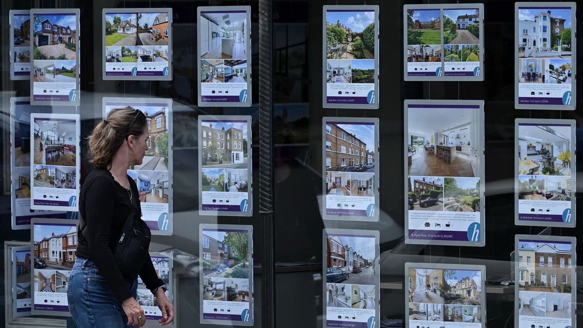 A pedestrians looks at residential properties displayed for sale in the window of an estate agents’ in Windsor, west of London.