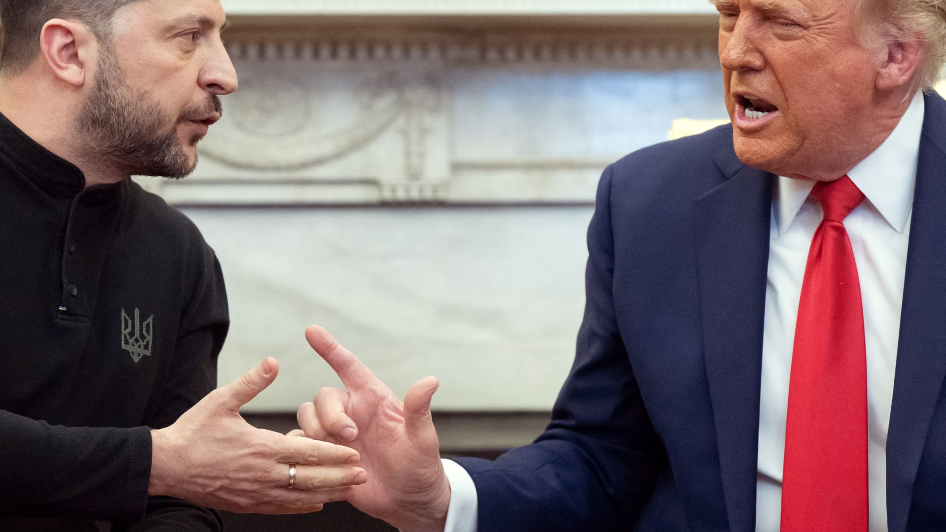 US President Donald Trump and Ukraine’s President Volodymyr Zelenskyy meet in the Oval Office of the White House in Washington, DC, Feb. 28, 2025.