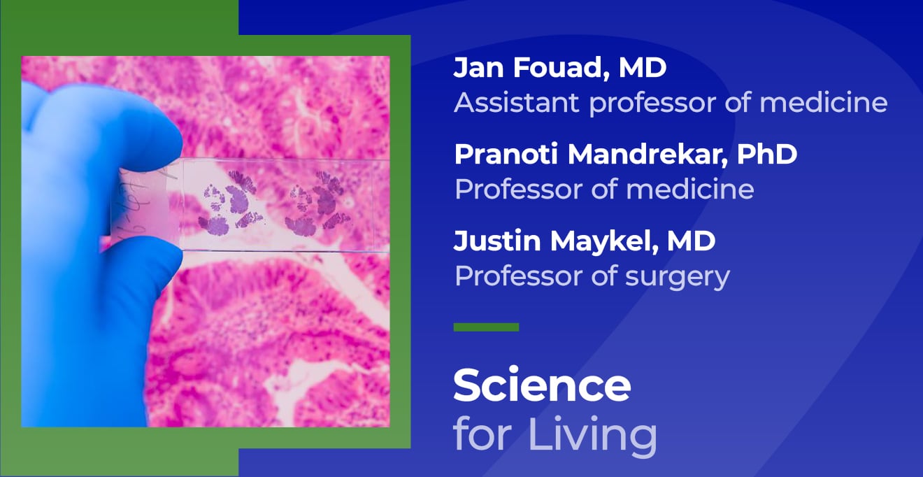 Maykel’s prevention advice is simple and actionable: Maintain a healthy diet, limit red and processed meats and alcohol, exercise, quit smoking, know your family history and get screened. “Colorectal cancer has the best opportunity for prevention and early detection through existing tests,” he said, “but less than half of patients follow screening recommendations.