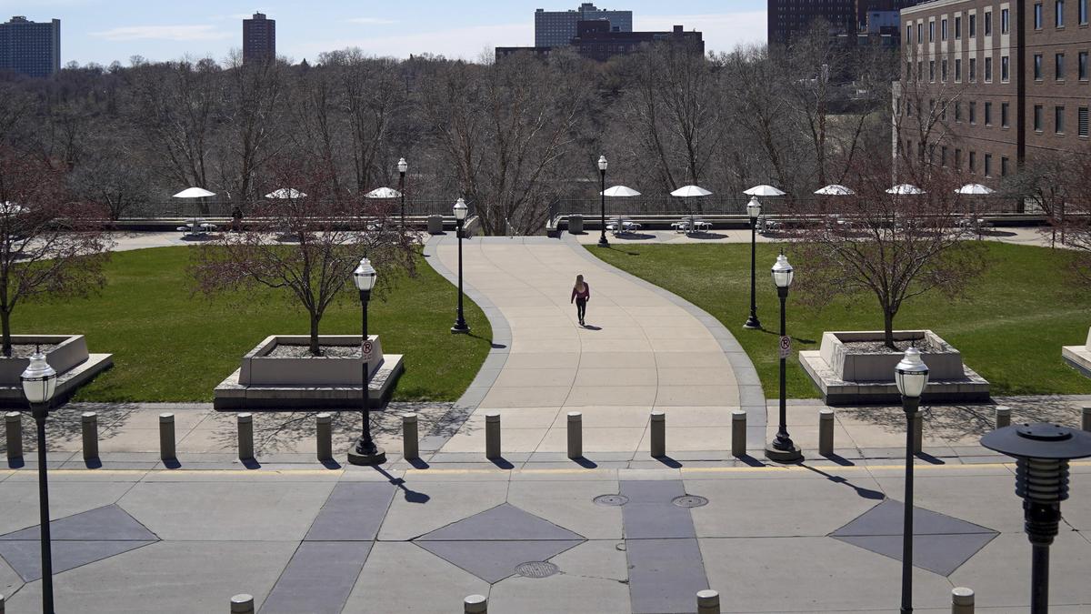 A person walks on campus at University of Minnesota in Minneapolis. File.