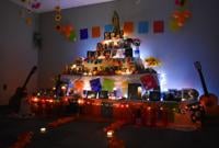 An altar in honor of those who have passed is decorated and illuminated during the Día de los Muertos Celebration on Nov. 1 at the UTA Wesley Foundation. Various foods, treats and personal items are placed alongside portraits of people who have passed and honored loved ones.