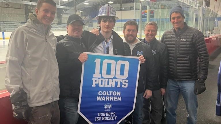 Note: Warren reached 100 career points in the shutout victory for U-32.