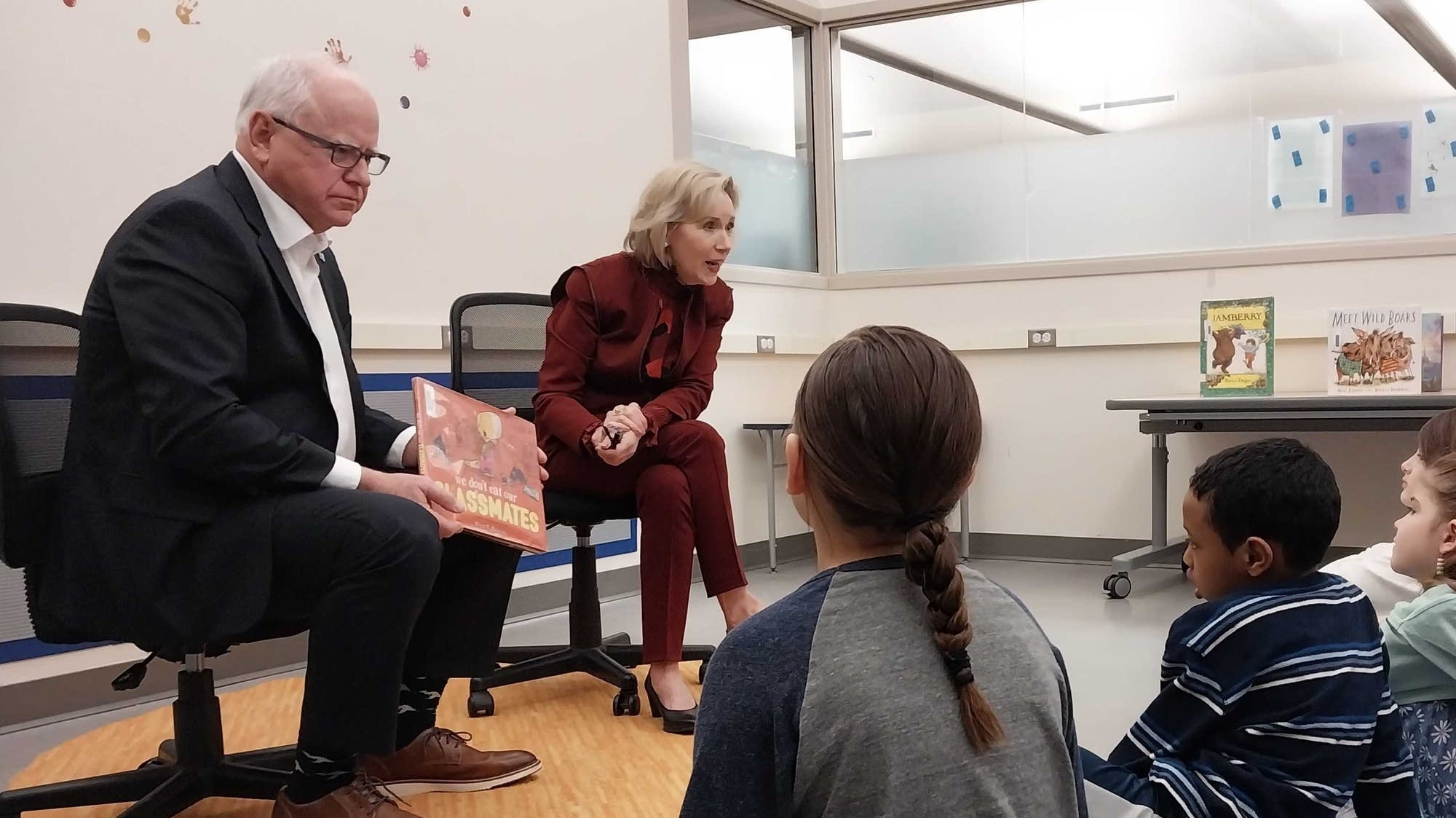 Walz visited an elementary school in Fridley on Wednesday. He and first lady Gwen Walz read a book to a 2nd grade class and said federal funding and staffing is needed for public school systems like this one.