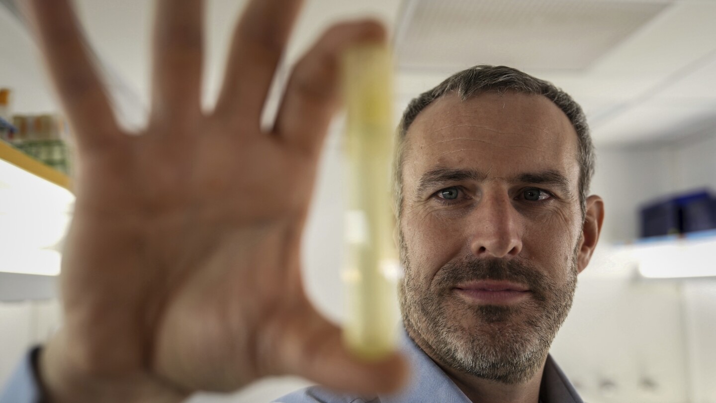Francois Ribalet, a research associate professor at the University of Washington’s School of Oceanography, pulls a vial of Prochlorococcus on Friday, Sept. 5, 2025, in Seattle. (AP Photo/Annika Hammerschlag)
