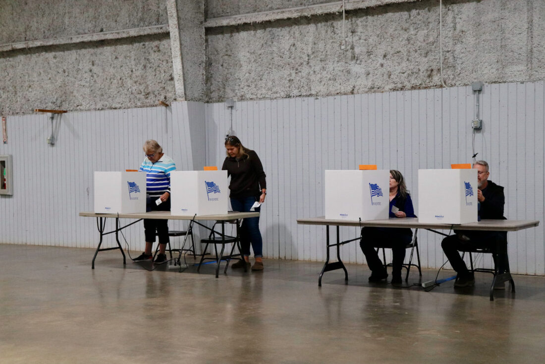 Voters complete their ballots Tuesday evening at the Washington County Fairgrounds. (Photo by Gwen Sour)